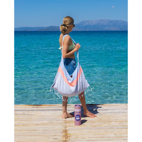 De NEON hammam tas is ontworpen voor gemak. Onderweg gebruik je hem als praktische strandtas voor je strandspullen, handdoeken of kleding. Eenmaal op het strand of bij het zwembad vouw je de tas eenvoudig open tot een ruim strandlaken waarop je comfortabel kunt liggen of jezelf kunt afdrogen.