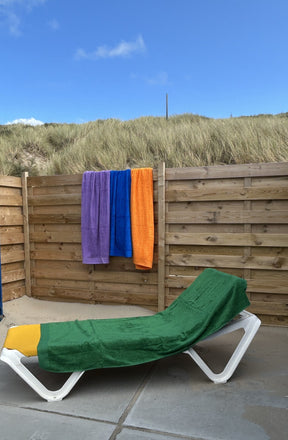 Dit strandlaken is verkrijgbaar in vele kleuren en aan beide kanten afgewerkt met een luxe boord. Door het gekamde katoen nemen ze goed vocht op en zijn ze lekker zacht. Door de handige lus kan je dit strandlaken makkelijk op hangen. Wil je liever groter? Wij hebben ook strandlakens badstof 100x200 cm. of velours strandlakens 100x220 cm.