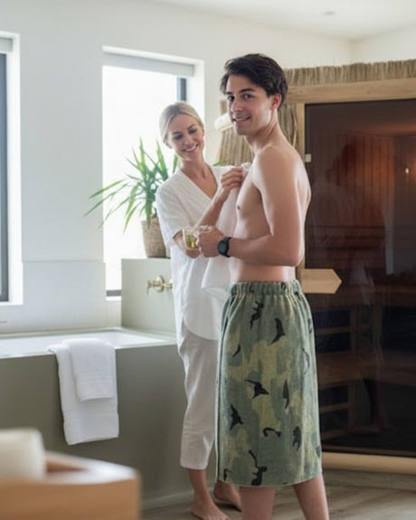 Naast klassieke saunahanddoeken kiezen steeds meer mensen voor een praktische saunakilt.
