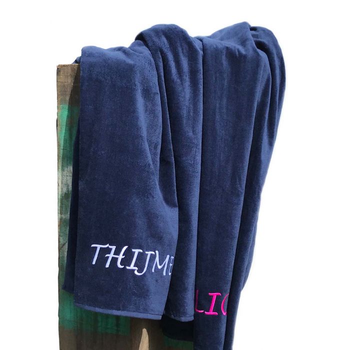Velours strandlaken met borduring - donkerblauw is nabesteld en wordt verzonden zodra het weer op voorraad is.