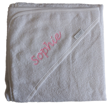 Na het badderen kunnen ze heerlijk in de handdoek worden gewikkeld waarbij hun naam op de capuchon staat geborduurd.
